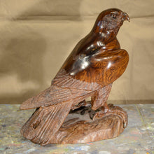 Thomas Suby with Ramon D.C., "Peregrine Falcon" 11 x 10 x 7. Hand Carved Ironwood sculpture.