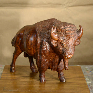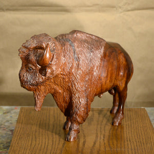 Thomas Suby with Ramon D.C., "Standing Bison" 8 x 11 x 4. Hand Carved Ironwood sculpture.